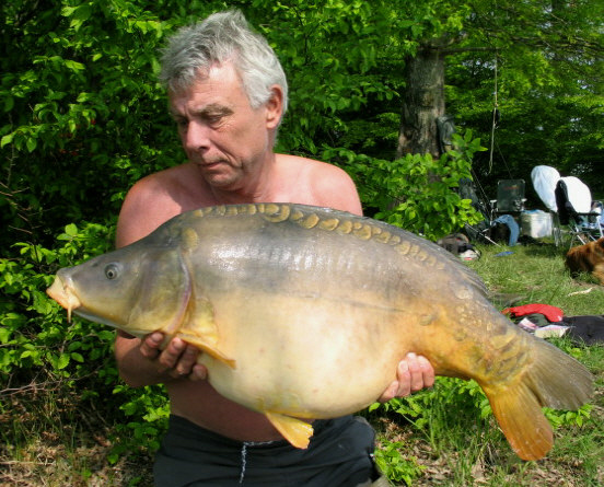 karper in die week was raak. Een spiegel, bijna naakt van 40 pond en één ons.