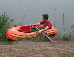 uitvaren. Robert in het bootje Robert die net terug komt van het voeren.