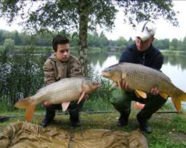Nadat de lijnen waren uitgeroeid zijn we begonnen met de tenten op te zetten, maar we werden al snel verstoord door een harde run van Robert die beet kreeg op zijn linkse hengel. Tijdens het drillen begon plotseling de middelste hengel ook te runnen en omdat Rick onze gast was mocht hij de middelste hengel binnenhalen. Nadat het drillen van beide prima was verlopen konden we beide vissen landen. Beide vissen werden gevangen op de vloerplek bij de marker.