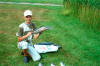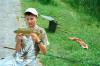 Ik pak mijn hengel en ik ga vissen.