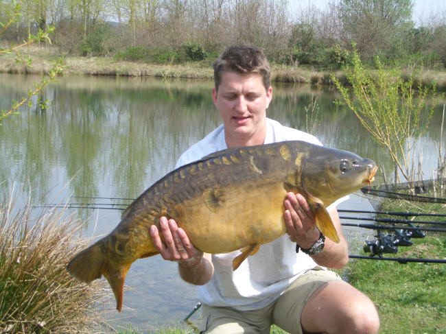 deze mooie spiegel van 44 pond in het net . Een uur daarna kreeg Dennis