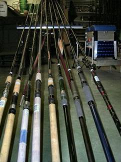 Vissers hebben keuzen uit hengels. Uit vaste hengels en werp hengels en een
